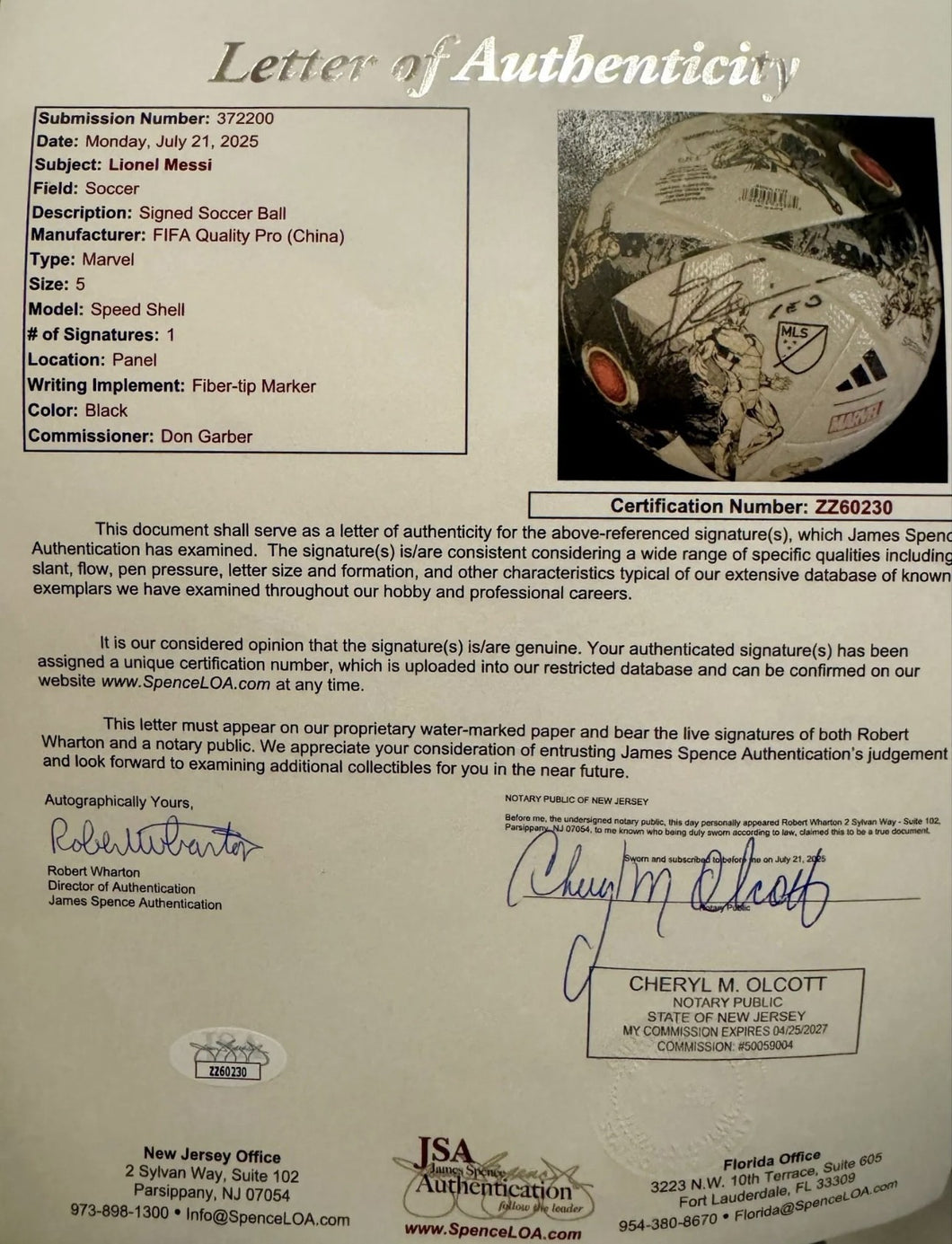 Messi Signed autographed Soccer ball, Rare Marvel collaborate with ADIDAS, full JSA Letter.